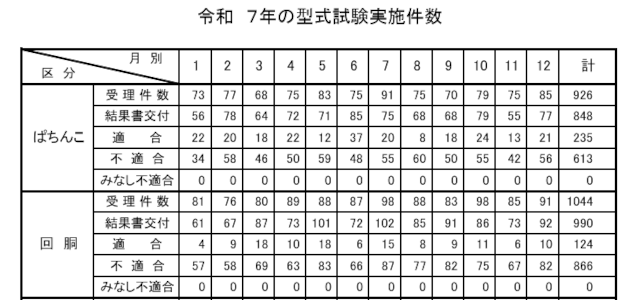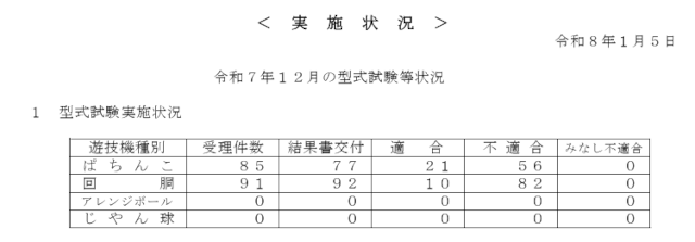 パチスロ適合件数は 『7件』 と先月の「3件」から微増。