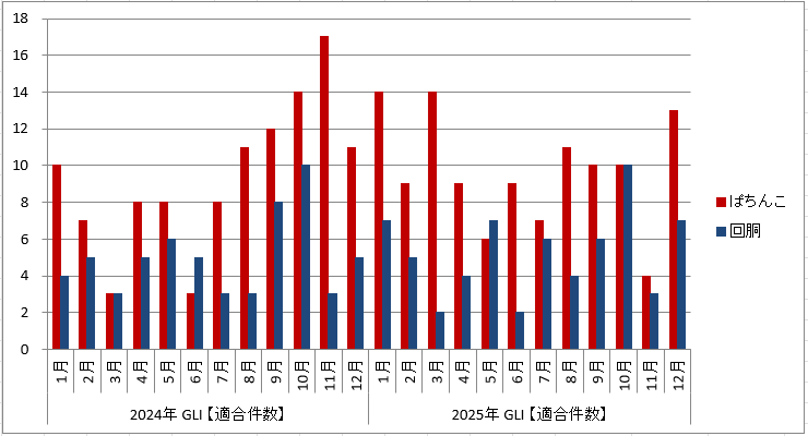 12月のパチンコ適合件数は 『13件』 と先月の「4件」から増加。