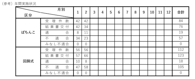 2月のパチンコ適合件数は 『15件』 と先月の「23件」から減少。